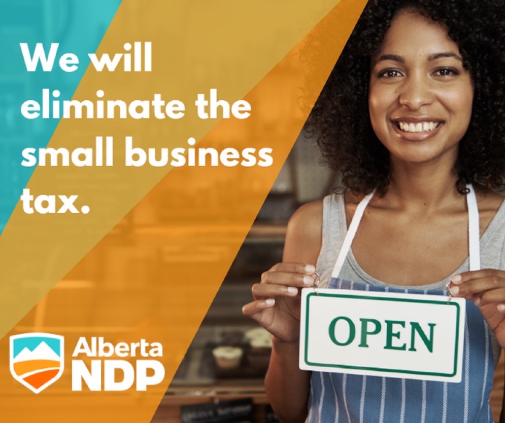 It’s time to give small businesses in #yycNorth more opportunities to take risks and grow in #yycNorth, the #AlbertaNDP will eliminate the small business tax. Get a Sign: https://buff.ly/3EALA3J